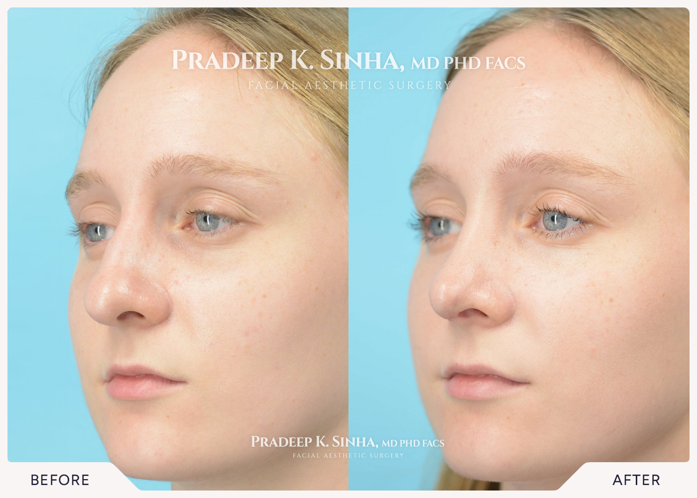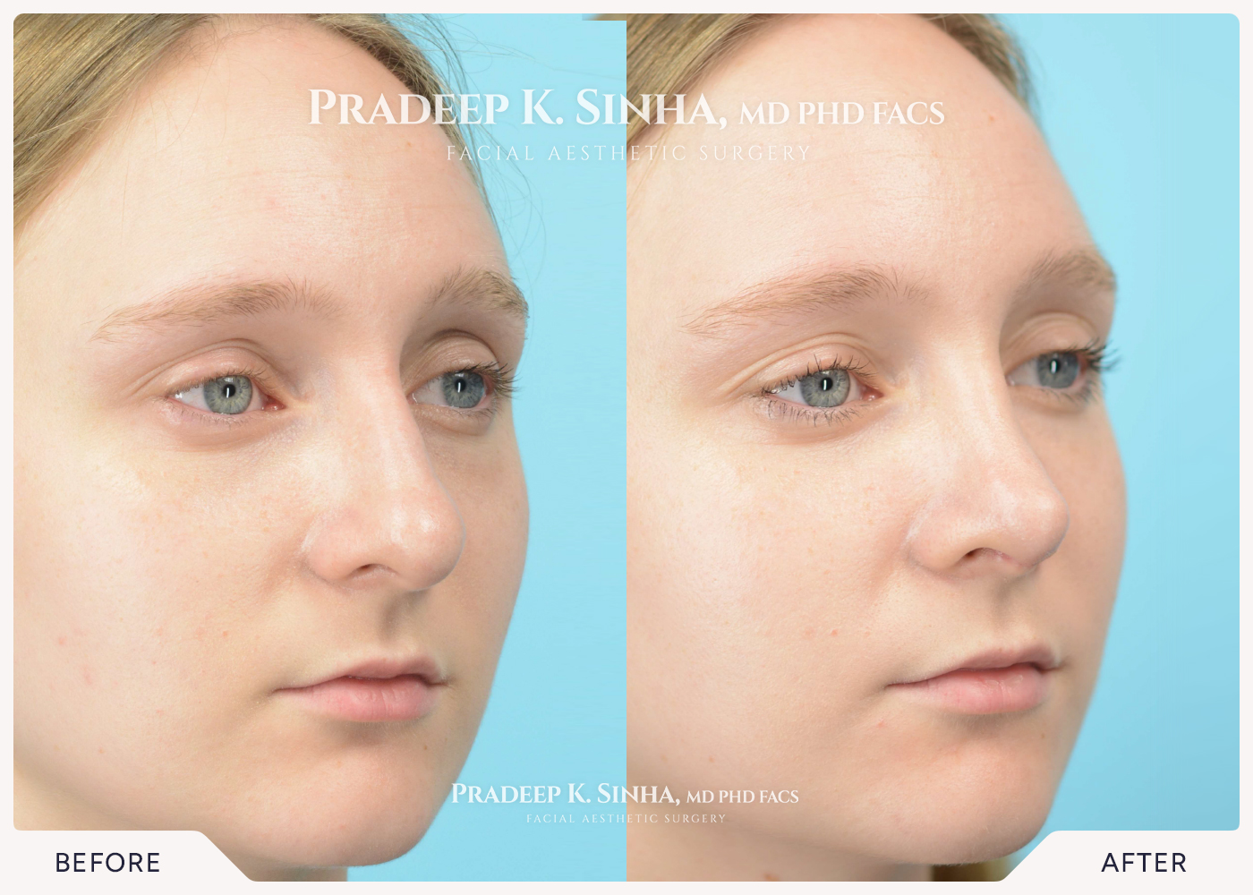 After feeling self-conscious about the shape of their nose, this patient consulted Dr. Sinha for a customized rhinoplasty. The after photo showcases subtle changes that enhance facial symmetry, leaving the patient feeling more confident while maintaining a natural look.
